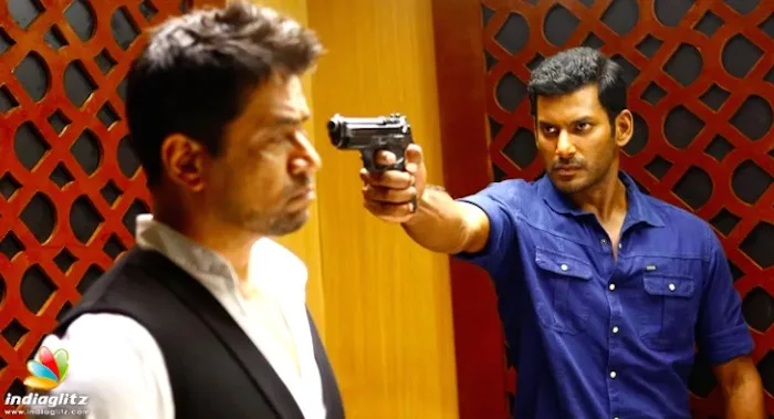Vishal plays Kathiravan to his best ability, and his fighting skills are justified by his army training. It’s very easy to believe that he is a man with anger issues, and he tries to justify it by saying that injustice makes him uneasy and he has to do something about it.