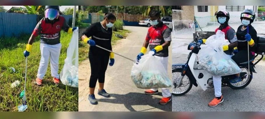 As a result, Penang siblings Vasugi Ramasamy and Suriya Kuppusamy who both hail from the Sungai Bakap area started the initiative to collect face masks littered about, armed with their own appropriate ‘work gear’ in face masks, gloves, and plastic bags. They have noticed the alarming trend and the quantities of masks and gloves found were far from enormous.