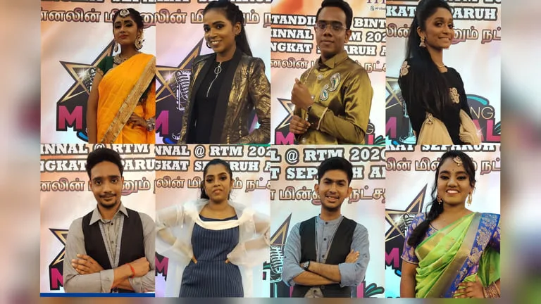 The singers selected to compete in the grand finale of Bintang Minnal @ RTM 2020 are Arulini, Gayathiry, Piraveen, Dhanasegarran, Ruhan, Michelle Grace, Thiviyashini, and Jaya Bharkavee.