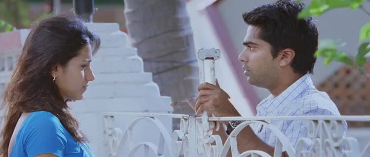 Then, he starts following her. He finds out where she works and randomly shows up wherever she is. When she found out he had feelings for her, she quickly warned him that it’s not going to work because of their religious differences – and that they should remain as friends. But of course, our hero will not take “no” for an answer, like most heroes in most Tamil movies.