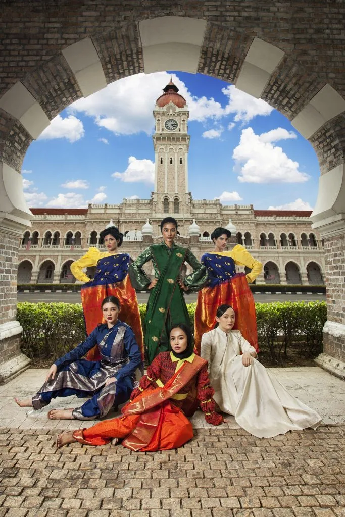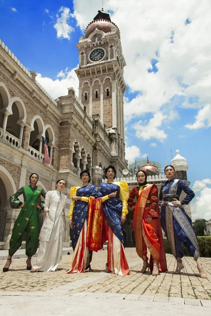 “Some of our national uniforms were inspired by these looks using Kanjivaram Silk sarees modeled with custom blouses created by Trihamsa, using various textiles such as songket, brocades and silks”.