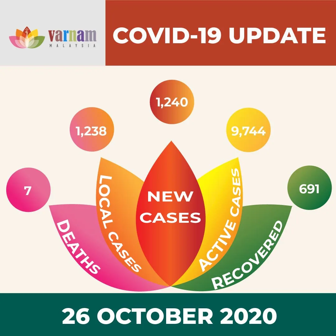 Malaysia has reported 1240 new Covid-19 cases today as revealed by the Ministry of Health (MoH). Presently, there are seven (7) deaths, two (2) imported cases, 1238 locally transmitted Covid-19 cases amounting to 27,805 Covid-19 infections in the country.