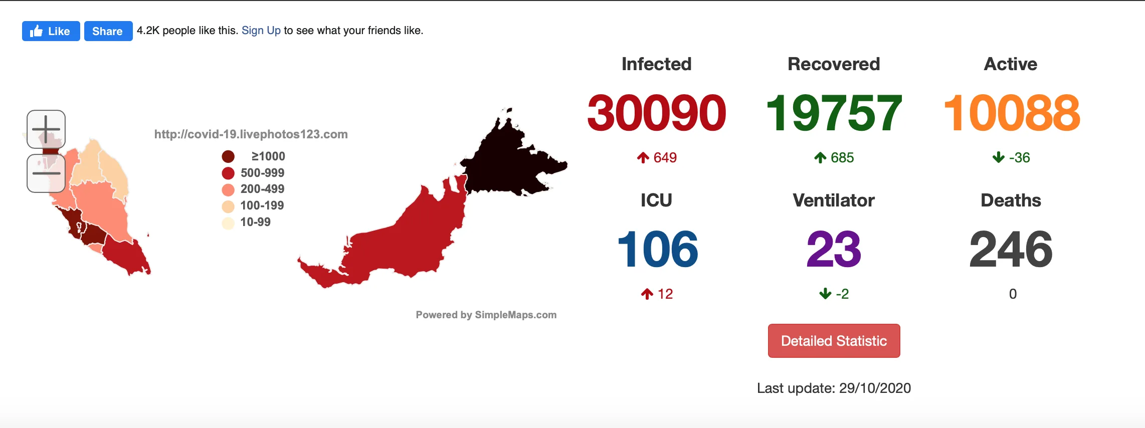 Of the 649 cases, seven (7) were imported cases and zero fatalities have been recorded today. Health Director-General, Tan Sri Dr. Noor Hisham Abdullah said that 685 patients have recovered and were discharged from hospitals today, taking the current rate of recoveries to 19,757 (65.66 percent of the total cases).