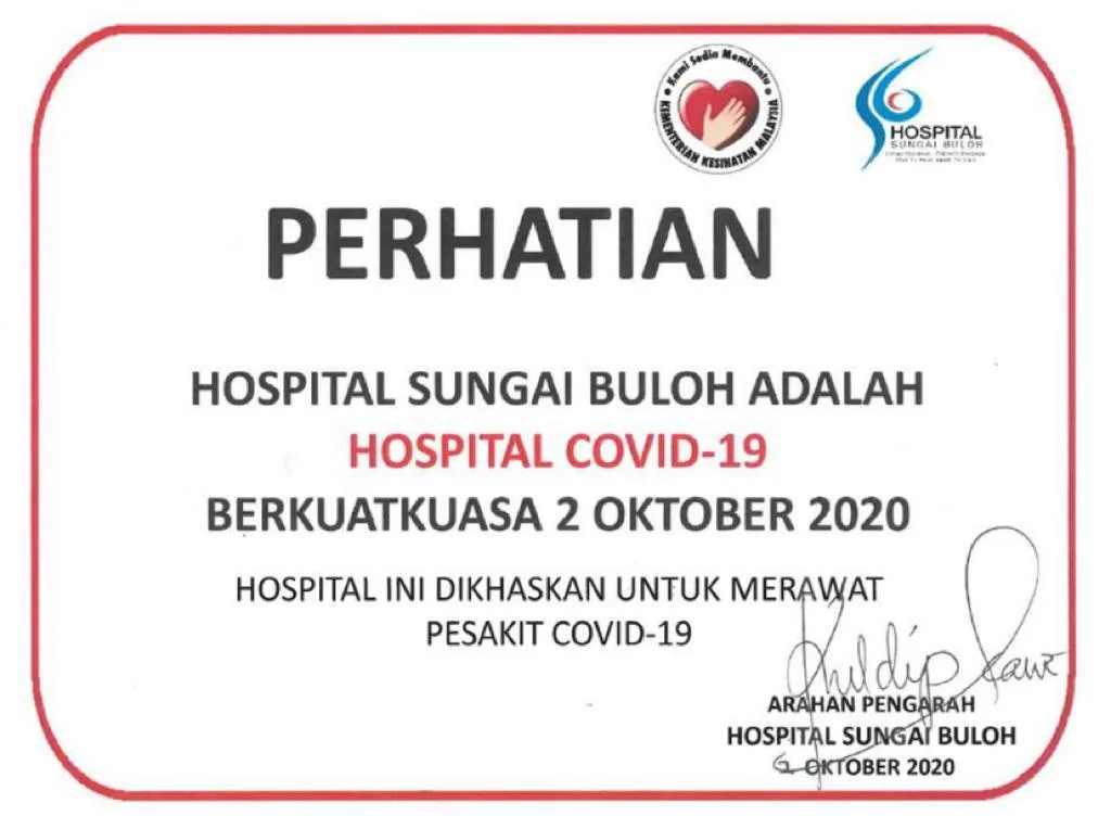 The Sg Buloh Hospital has further made a public statement that the hospital will be the main center for the COVID-19 outbreak as of 2 October 2020.