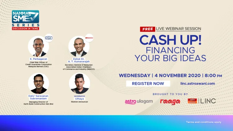Cash Up! – Financing Your Big Ideas, is a free business webinar for SMEs on 4 November 2020, 8pm and is open for registration to all Malaysians at Astro AWANI’s official site.