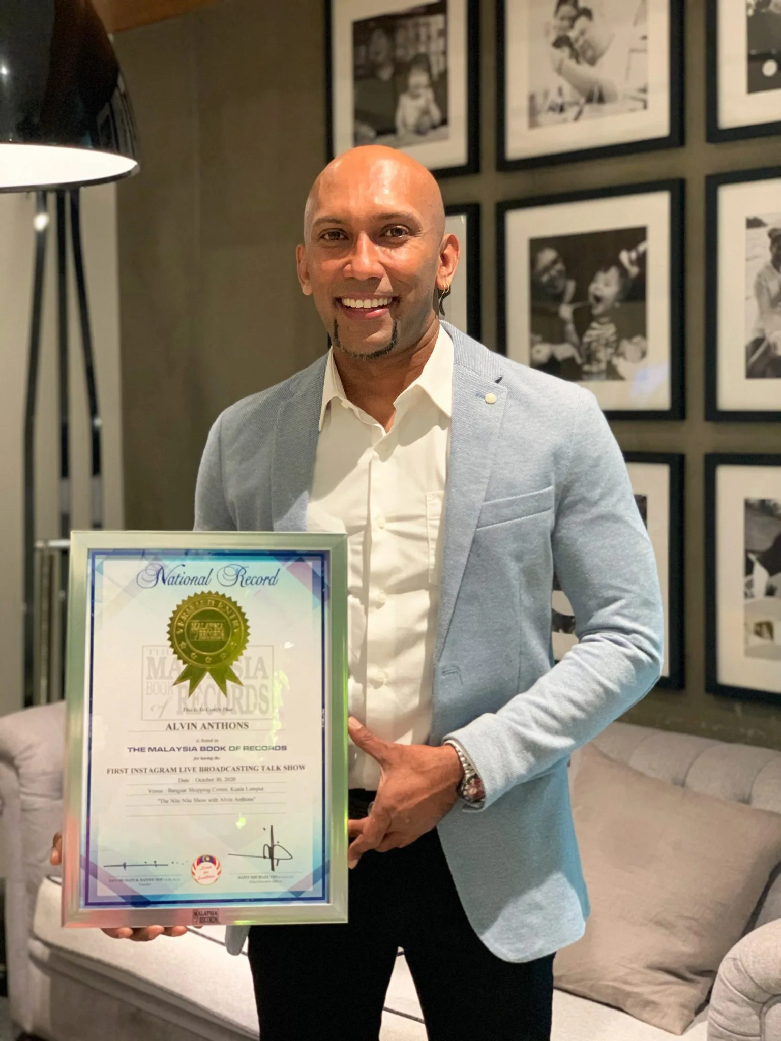 An accomplished presenter, awards host and broadcaster, Alvin Anthons has earned a National Record verified by the Malaysia Book of Records for the first Instagram Live Broadcasting Talk Show. A bi-weekly Virtual Live Talk Show titled ‘The Nite Nite Show with Alvin Anthons’, Season 1 has been broadcasting live on his Instagram at 10 pm every Tuesdays and Thursdays since July.