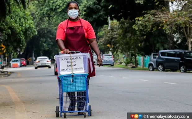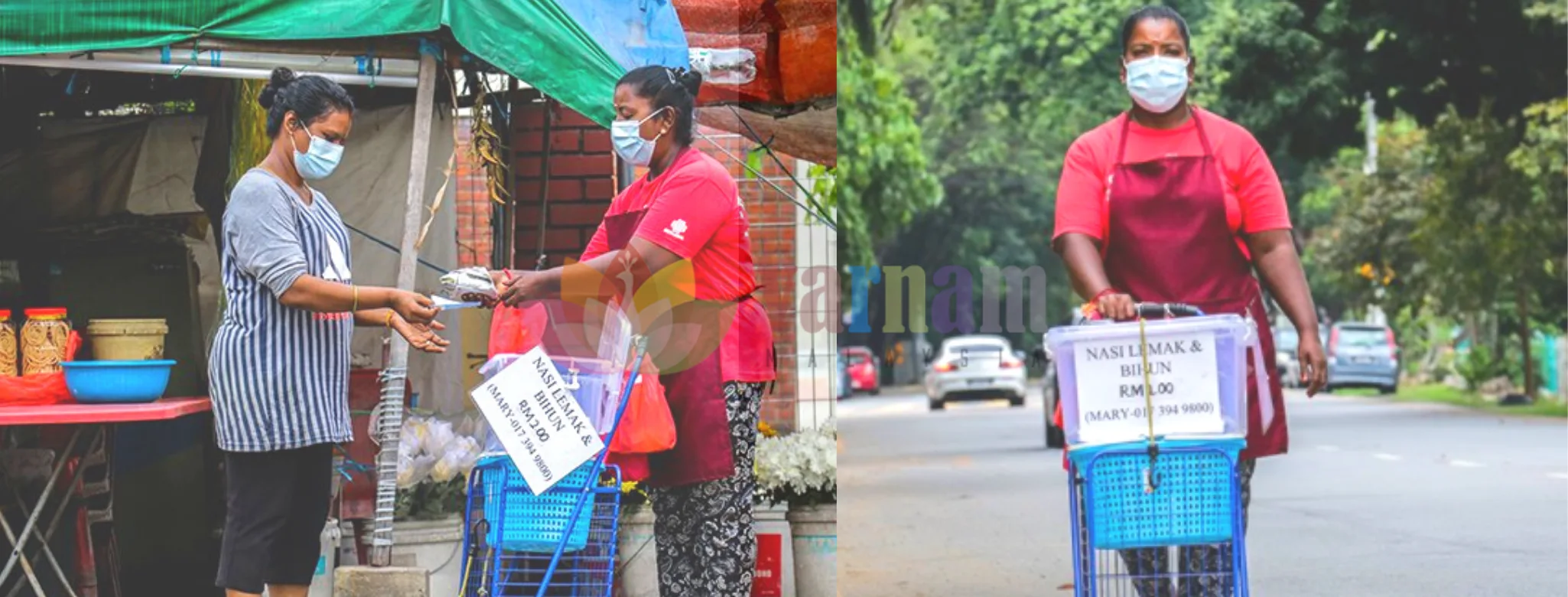 The determined mother who lost her job as a cleaning lady at an office sells nasi lemak and bihun goreng around the streets of Taman Desa at 6:30am with a single trolley.