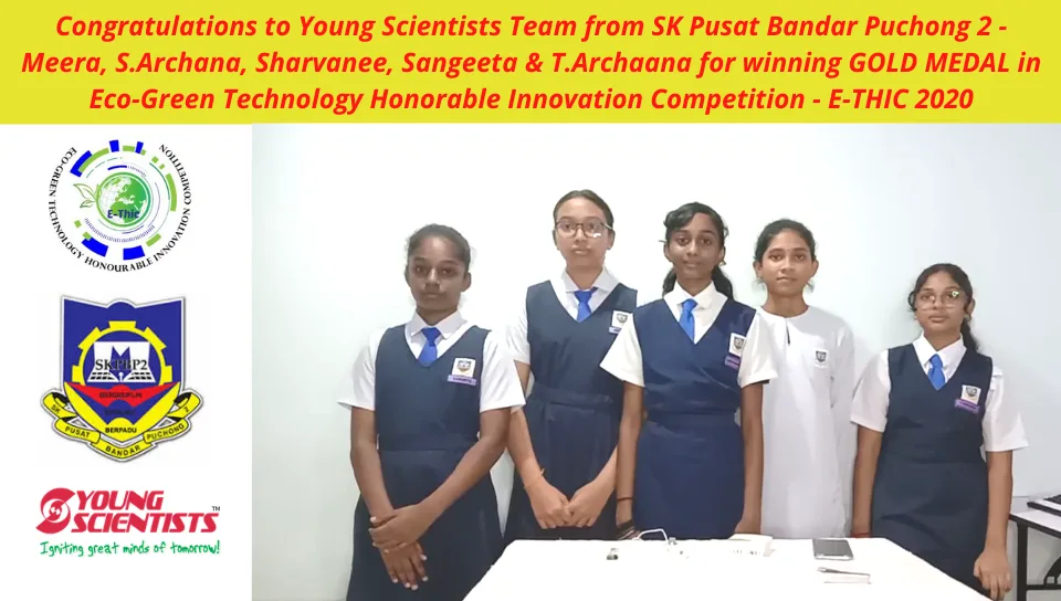Making a name for themselves, five young scientists from SK Pusat Bandar Puchong 2 have made the country proud by bagging a gold medal in the prestigious Eco-Green Technology Honourable Innovation Competition 2020 (E-THIC). The competition was held online during the Conditional Movement Control Period (CMCO).