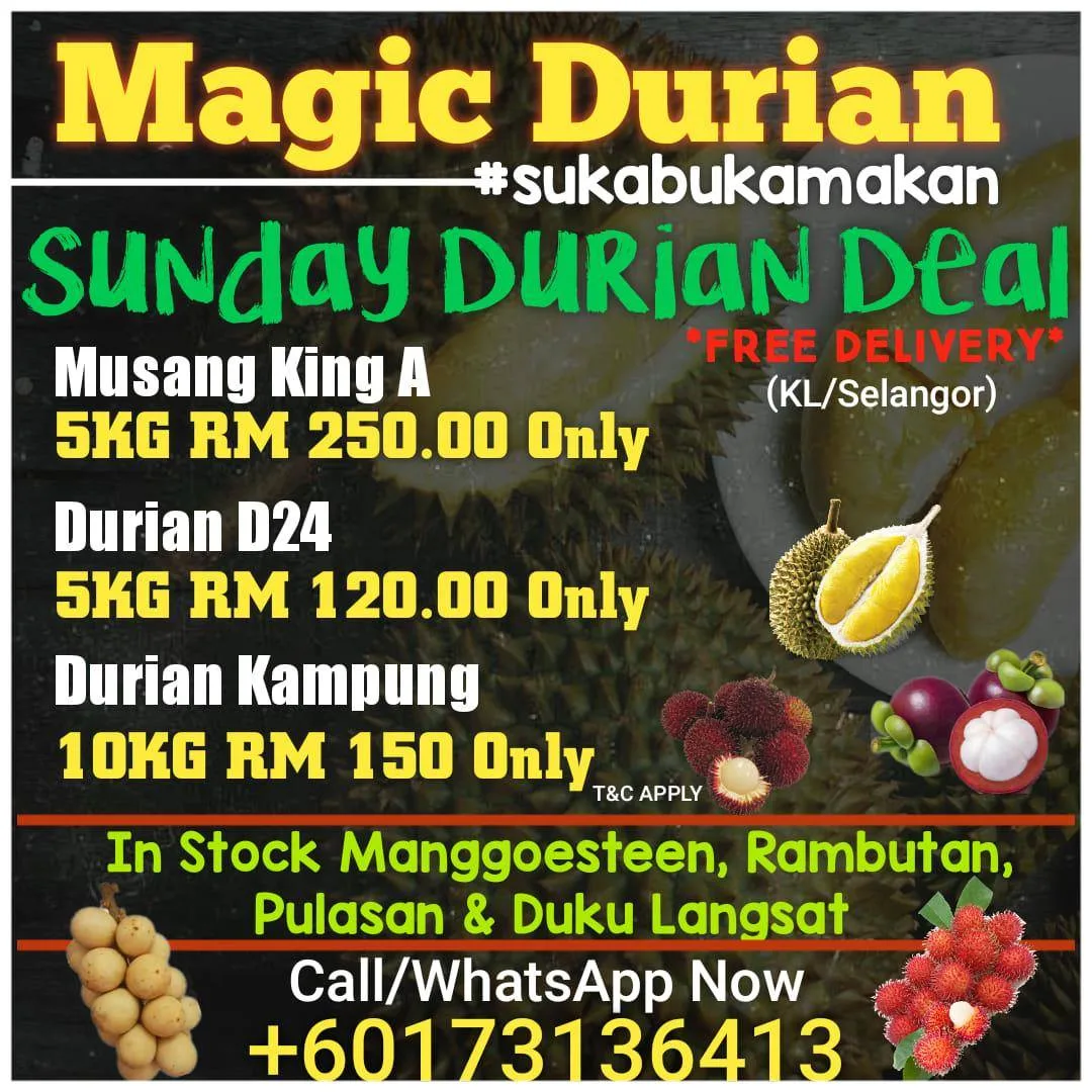 Are you craving for a scrumptious, sweet, creamy and rich durian during this festive season? Grab your phone and WhatsApp him now at +6017313643 to purchase this ever famous tropical fruit from Vikey!