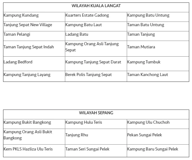 A total of 27 areas in Kuala Langat and Sepang will undergo scheduled water supply disruptions starting from 24th November 2020.