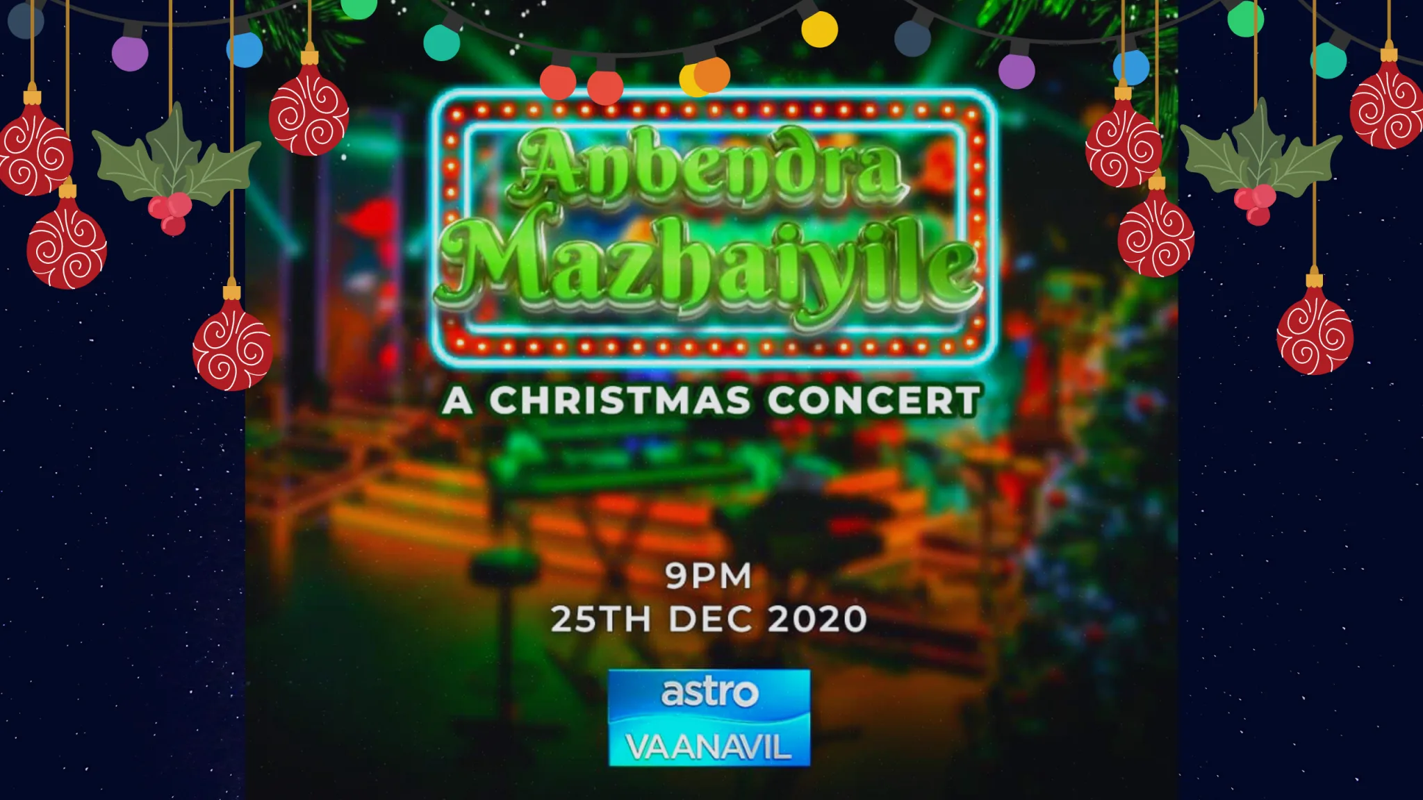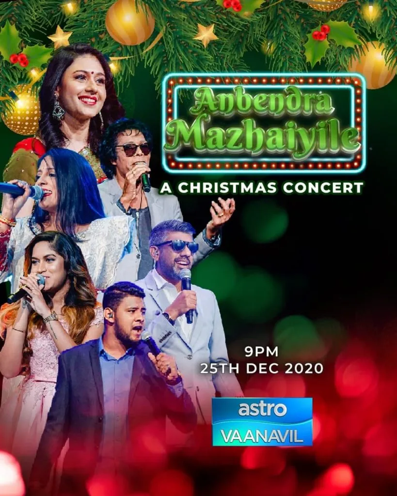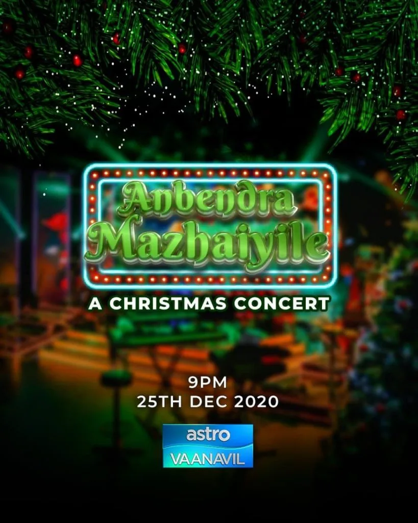 We are excited to present this special Christmas concert, Anbendra Mazhaiyile, following the success of the recent Deepavali unplugged retro musical show, Malarum Punnagai. We hope to continue developing the local film and music industry by featuring more of our local talents. We thank all Malaysians for their continuous support and we hope they enjoy this festive treat.