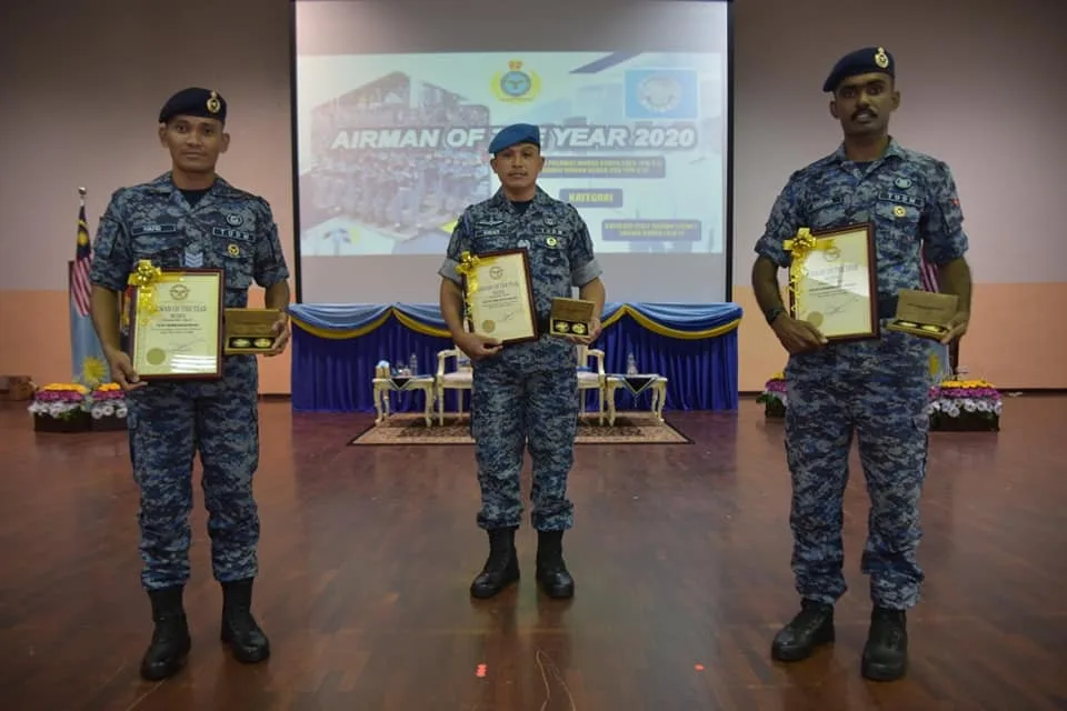 Corporal Krishnamoorthy A/L Letchumanan has won the Airman Of The Year 2020 in the Materiel Technician Course series 150/20, among other officers; Sjn U Azhar bin Abdul Halim, Kpl U Khairul Amri bin Keria, and LU I Muhamad Fazrin Tasnim bin Abdul Malek.