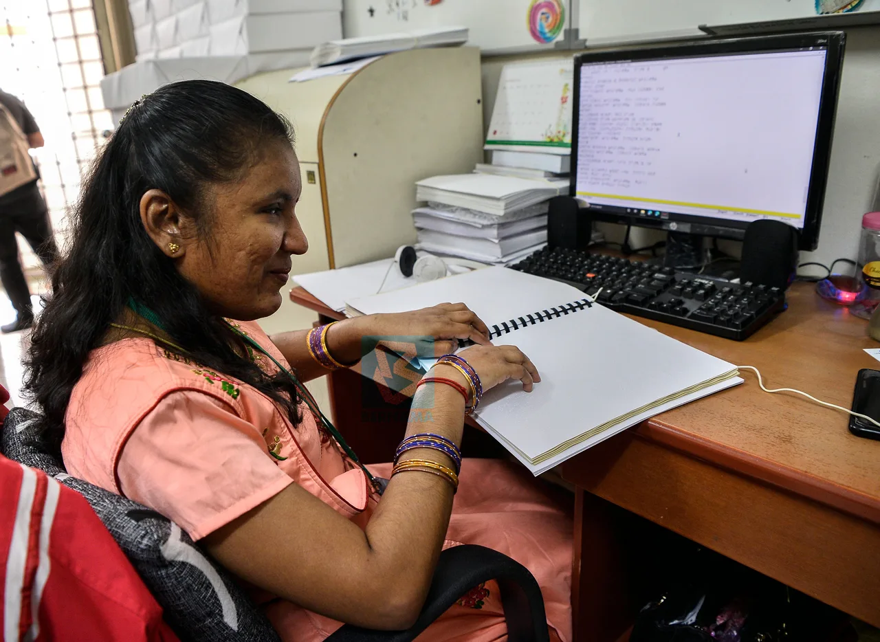 S.Umashangari, born blind, first learned Braille while she was A standard 1 Student at Sekolah Rendah Pendidikan Khas St. Nicholas, Penang.