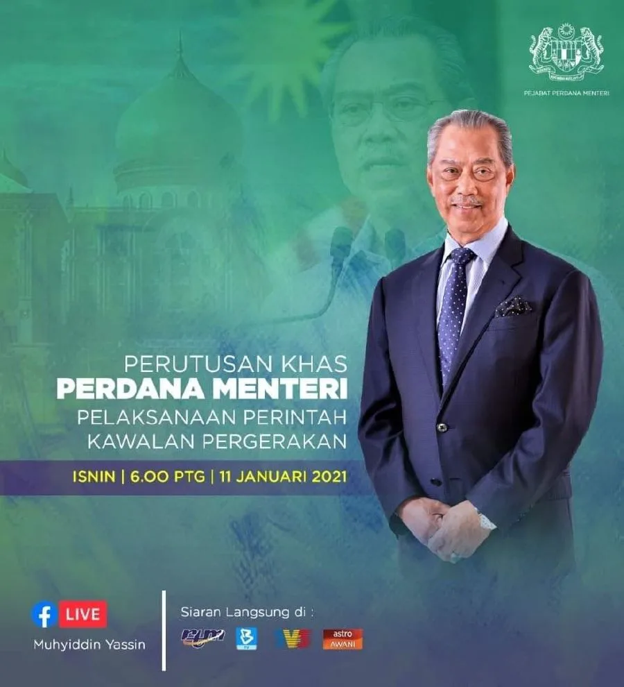 Prime Minister Tan Sri Muhyiddin Yassin is expected to make his much awaited statement on the implementation of stricter Covid-19 measures which may include a possible Movement Control Order (MCO) 2.0 at 6pm today.