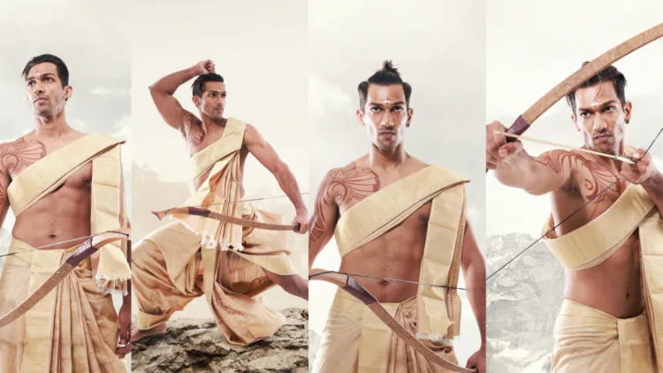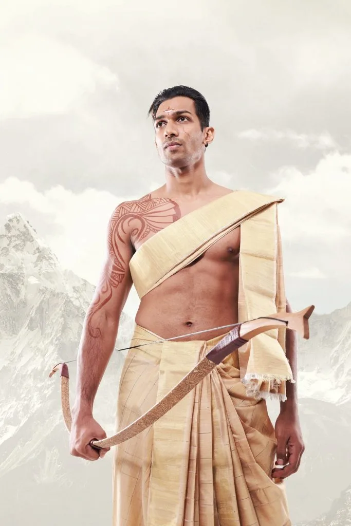 The veshti concept shoot is brought forth to define one of Mahabaratha’s epic bold character of war; Arjunan to delineate the Arjunan who is standing by us in the battlefield of COVID-19, fighting through the micro war vigorously every day, sacrificing their own lives to protect ours!