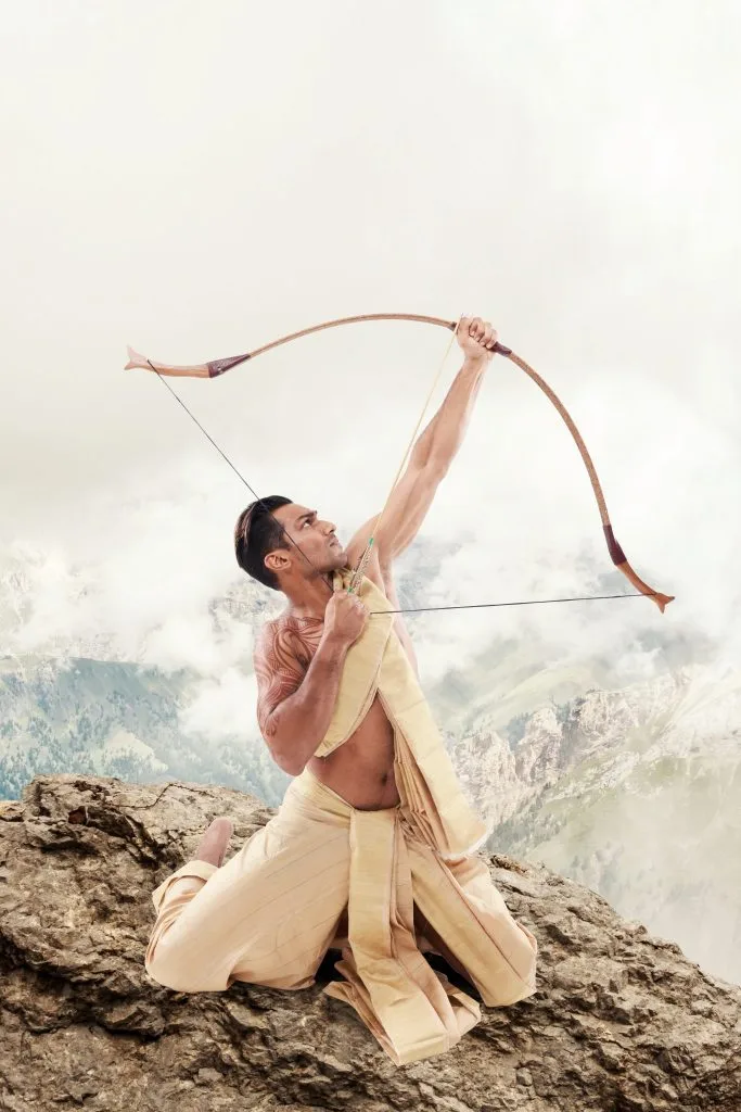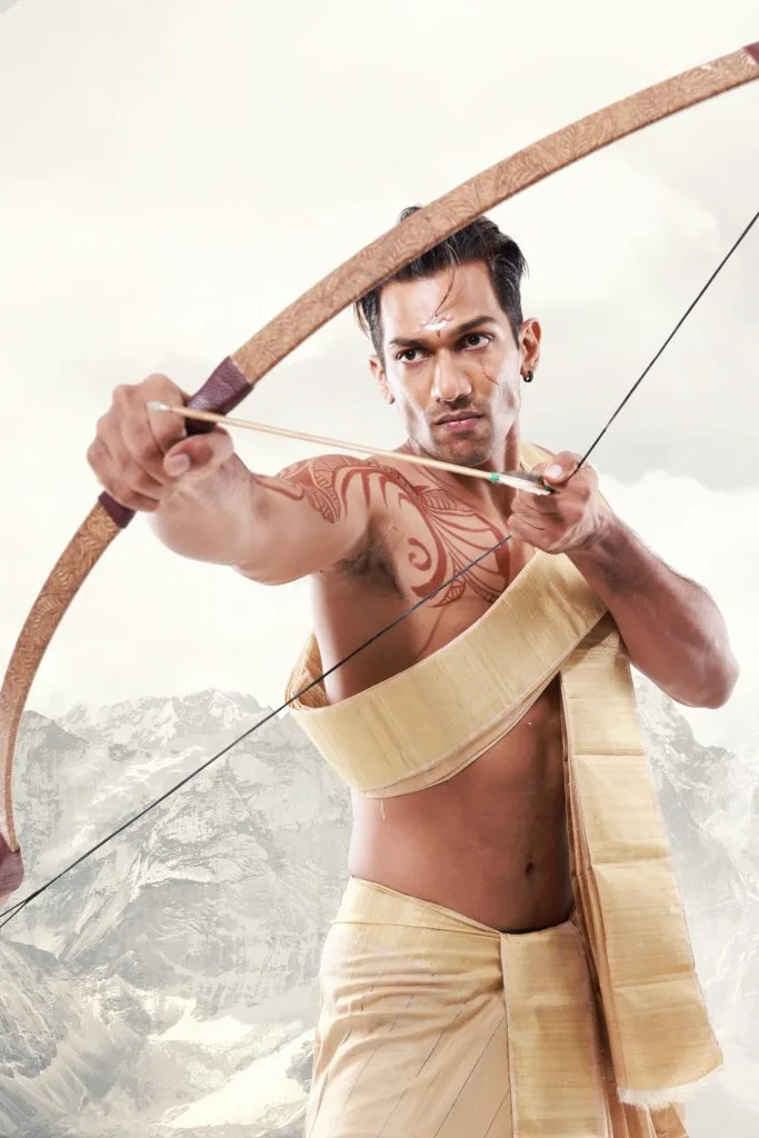 Arjunan wields the mighty bow Gandiva and his magical quiver giving him endless supply of arrows