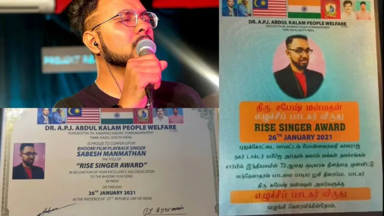 A name that needs no introduction, Sabesh Manmathan who was featured in D.Imman’s collaboration with Jayam Ravi’s 25th Movie; “Boomi”, was awarded the ‘RISE SINGER AWARD’.