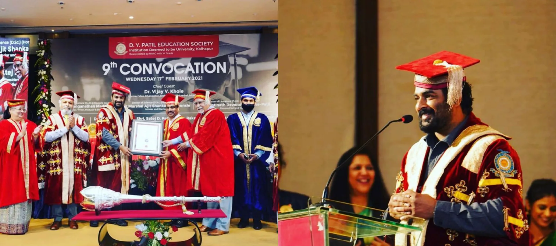 The event took place at the 9th convocation ceremony of DY Patil Education Society, where the chancellor, the vice-chancellor, members of the academic council, and the board of management came together to honour the legendary Madhavan.