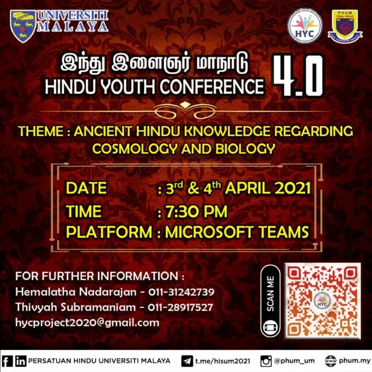 The Hindu Society of the University of Malaya will host their 4th Hindu Youth Conference, which will concentrate on “Ancient Hindu cosmology and biology.”