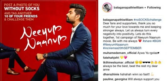 We’re pretty sure all of you have seen the meme by now. Tv host, actor, and director Bala Ganapathi William got all suited up with a pair of dress shoes for the grand audio launch of his debut directorial venture, Neeyum Naanum. While we all think he looked dapper, a certain Facebook page called him … Continue reading BGW Starts ‘No Socks’ Challenge After Defamatory Meme