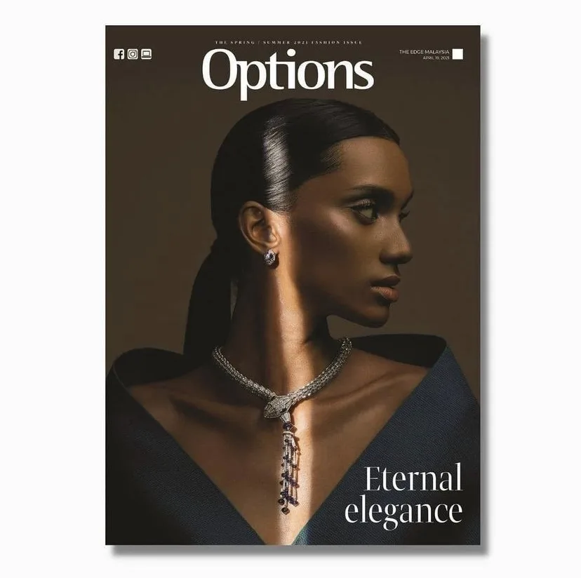 Vanizha Vasanthanathan, a well-known model, is spotlighted in Options’ Spring/Summer 2021 issue. To commemorate the upcoming Hari Raya celebrations, she models for Bvlgari’s highly beautifully defined serpent-shaped high fine jewellery necklace.