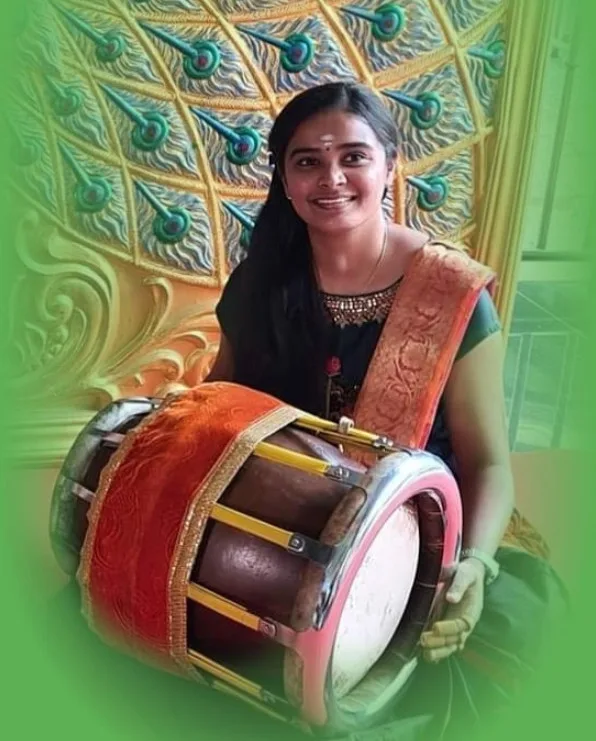 Jhananeshwari has been playing the thavil for more than 7 years in Malaysia. She has performed as a thavilist at a variety of auspicious occasions, including weddings, temple events, musical performances, and several others.