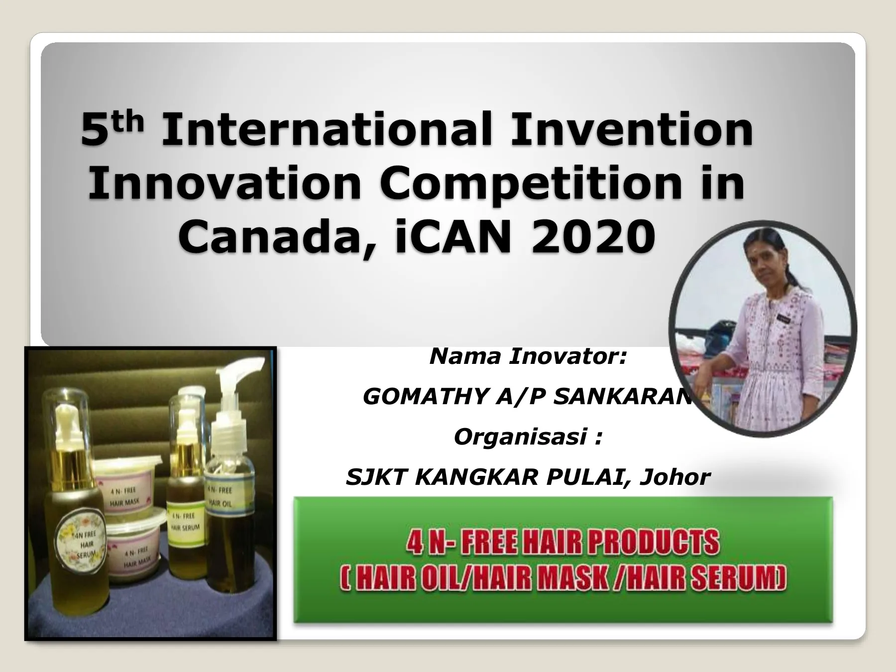 It comes after Gomathy received recognition for her herbal hair oil innovation which was held on May 20th till 22nd at the 13th European International Innovation Competition in Ilsa, Romania.
