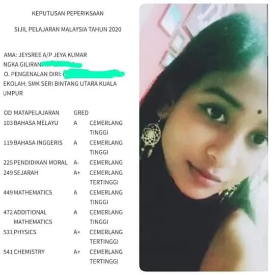 An array of Malaysian Indian students have obtained excellent results in the Sijil Pelajaran Malaysia (SPM) 2020 examination, which were announced on Thursday (June 10).