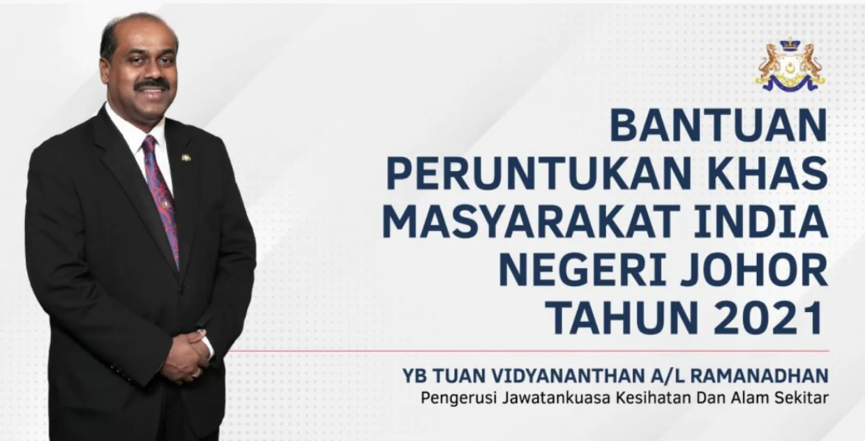 The Chairman of the Health and Environment Committee, R. Vidyananthan has made a special allocation to help the Indian community in Johor who are in dire need. The application is open to the public from now onwards till 15th July, 2021.