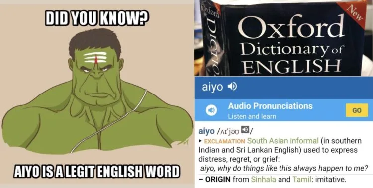 Yes, most of us were unaware of this because “aiyo” was quietly inducted into the dictionary in 2016. Only a few Indian news outlets, such as The Indian Express, covered this story.
