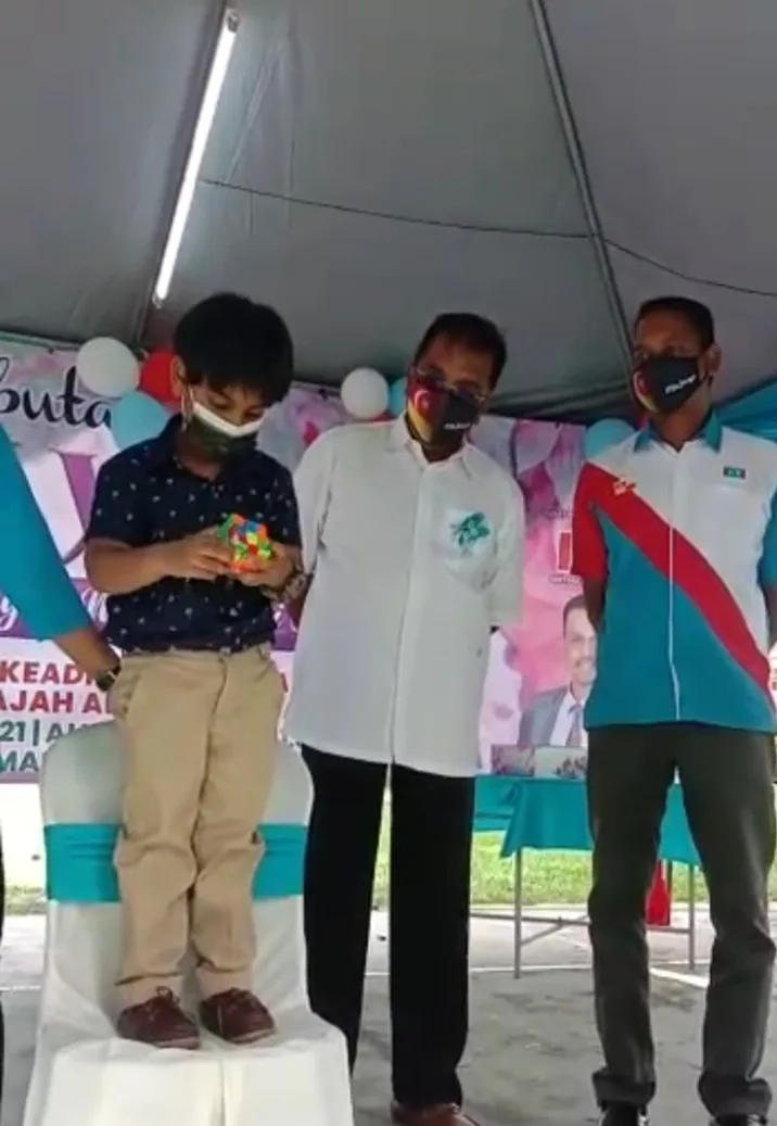 He is now the youngest record holder to solve the Rubik’s Cube, earning himself a spot in the Malaysia Book of Records 2021.