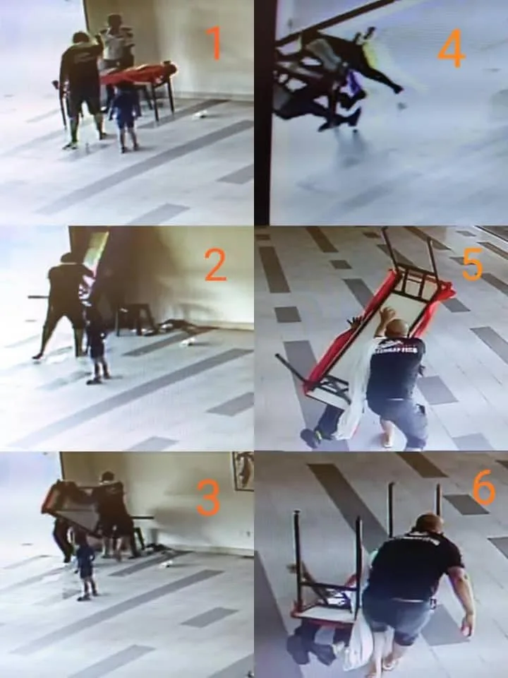 Thereafter, the security guard rushed to the management office to report about the incident and the Manager stepped in to deal with the man, but he declined to listen as well. The man who was enraged with Thava brutally attacked him without sympathy. Thava was beaten twice with the table in front of the little kid, who forcefully shoved him to the ground.