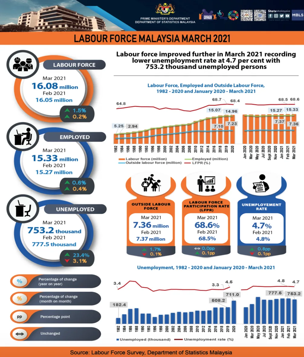 Massive drops in employment due to the COVID-19 crisis had a devastating effect on jobs and incomes among Malaysians. According to the latest Key Statistics of Labour Force in Malaysia released in March 2021, an approximately 753.2K individuals have lost their jobs as COVID-19 creates turmoil in labour markets.