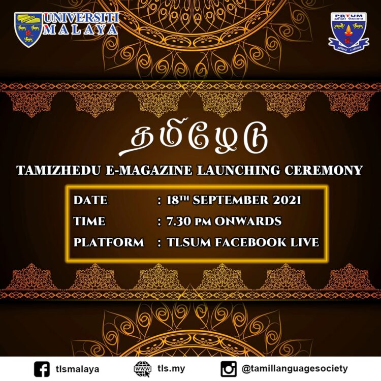 The students of University Malaya, readers of this E-magazine and experts from local & international arenas are welcome to join the online event. To curb the spread of COVID-19, ‘Tamizhedu’ will be launched via virtual platforms.