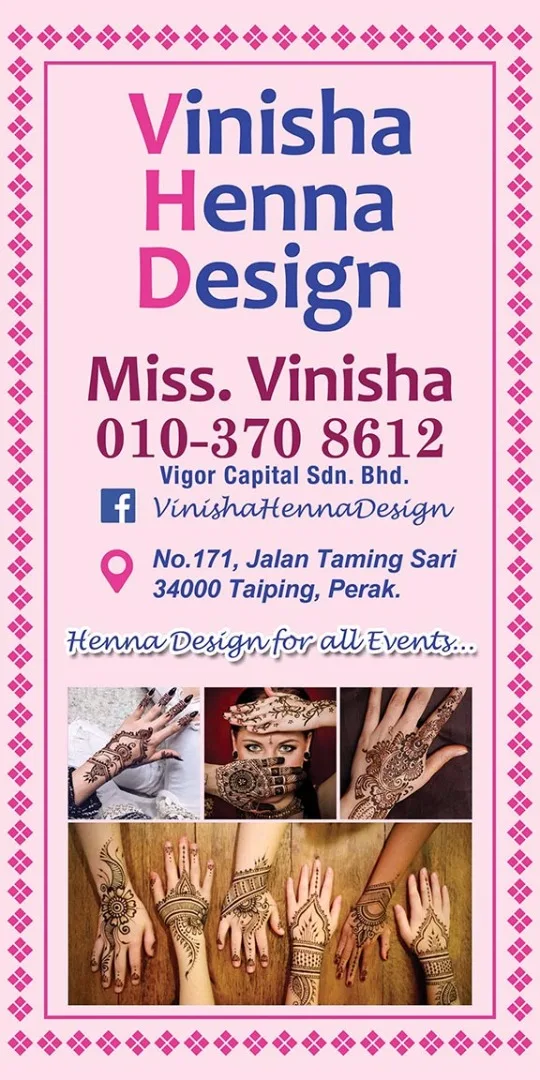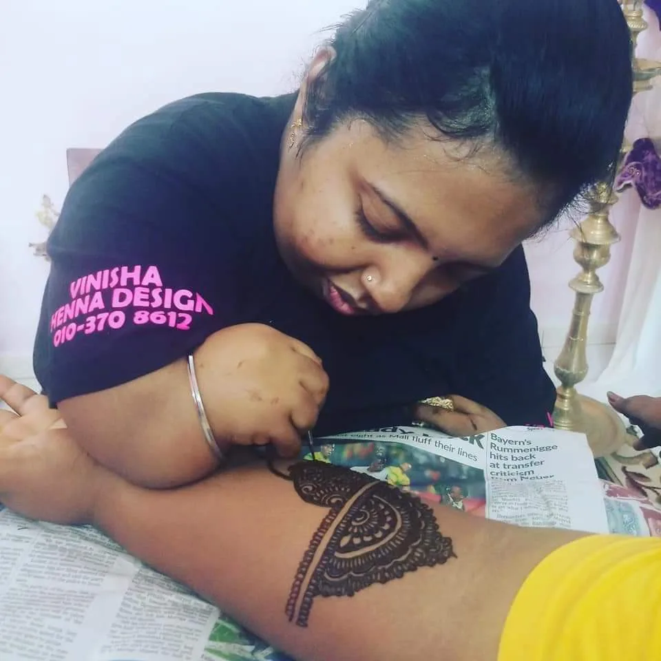 Having graduated with a Diploma in Multimedia Management from Multimedia College (Perak), Vinsha’s interest in henna began because of her disability.