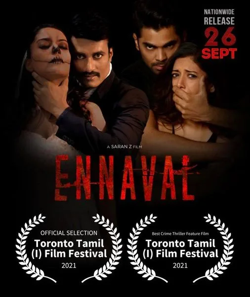 Congratulations to the Ennaval team for receiving such a prestigious title at a reputable international platform such as the Toronto Tamil International Film Festival. The film won the award for Best Crime Thriller Feature Film (Jury Award).