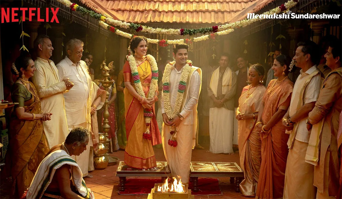 Meenakshi Sunareshwar, a Netflix original film, is not about the famous temple in Madurai, which is located on the southern bank of the Vaigai River but about a couple whose names coincidentally match the historic Hindu temple in the city of Madurai.