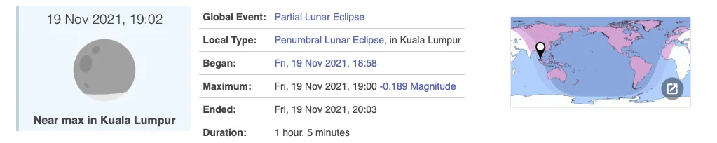 However, if you want to witness the cool occurrence (lunar eclipse) in the future, you don’t need any specialised equipment to see a partial lunar eclipse. All you need is the exact date and time of the next eclipse to be visible from your location.