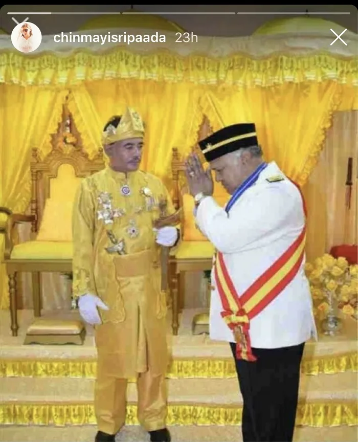 A picture of Radha Ravi receiving the award from someone dressed in Sultan’s garb had been circulating at the time, with the actor’s camp claiming the dignitary was the Sultan of Malacca. Malacca is one of the 5 states in Malaysia that do not have a Sultan. In fact, the Malacca Sultanate ended in 1511 when the Portuguese conquered the kingdom. The image is clearly photoshopped and Chinmayi hits the nail on the head when she says that no awardee will face the Sultan sideways when receiving an honour.