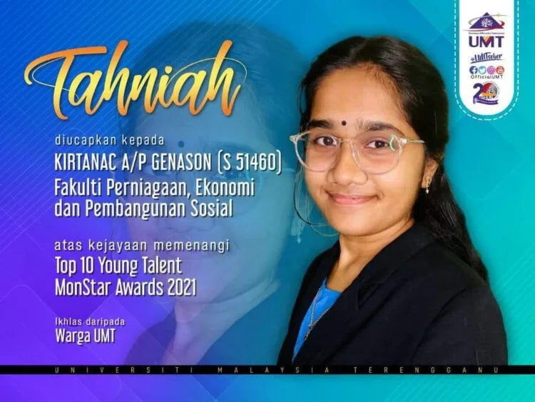 Kirtanac M Genason, a student from University of Malaysia Terengganu (UMT) has been selected for inclusion in the prestigious award ceremony which was held at TGV, KLCC last Saturday (27th November 2021).
