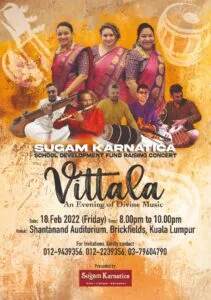 Sugam Karnatica, a Malaysian arts school specialising in Indian classical music, warmly welcomes you to their enchanting evening concert, ‘Vitalla, An Evening Of Divine Music‘.