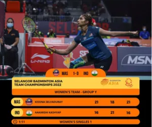 The excellent performance of Kisona and other Malaysian players has enabled Malaysia to advance to the semi-finals of the Asian Team Badminton Championship (BATC) 2022 as the Group Y champion.