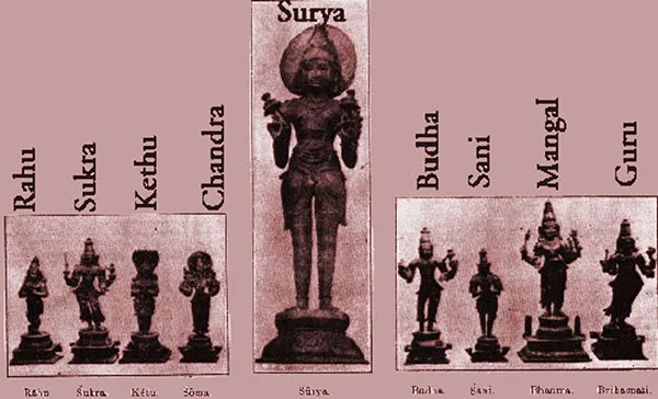 However, for many Hindus, the positioning of the stars and planets, rather than astrology, plays an important role, even in the hindu temple. Most Hindu gods are representations of planets and stars, such as Sani Bhagavan, who is the celestial embodiment of Saturn and one of the nine celestial objects (Navagraha) in Hindu astrology.