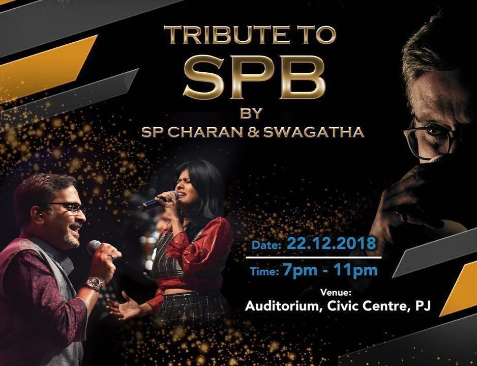 After the previous sold-out success featuring the living legend, SP Balasubramaniam, Raaghav Production is back with another spectacular event: Tribute To SPB By SP Charan & Swagatha.