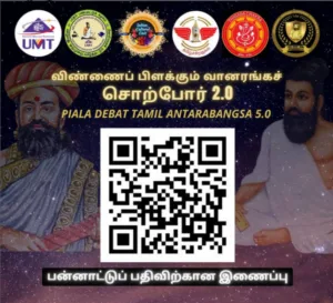 The Bharatham Cultural Club of Universiti Malaysia Terengganu will be organising a Piala Debat Tamil Antarabangsa 5.0/ Vinnai Pilakum Vaanarange Sorpor 2.0 which is a programme that collaborates with the Indian Cultural Club of UKM (KL), the Thigada Chakra of Sri Lanka, and Tamil Siragugal, India.