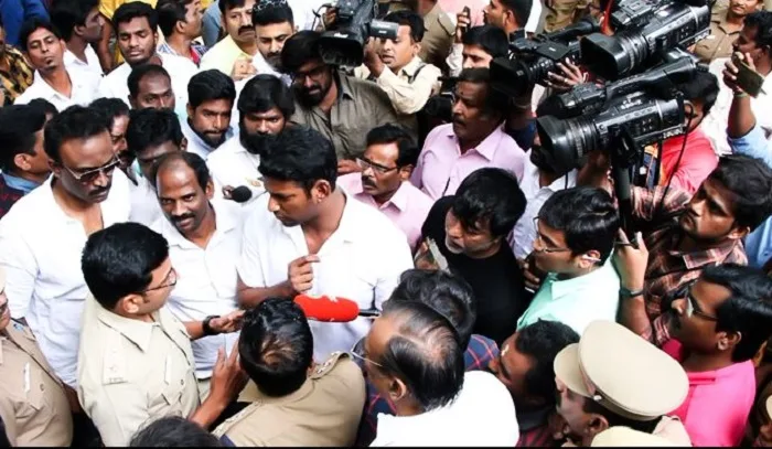 Vishal has not only been at war with this group of producers, but also with the police. He claimed the police were standing watch and were present when the office was locked by people who were not members of the TPFC.