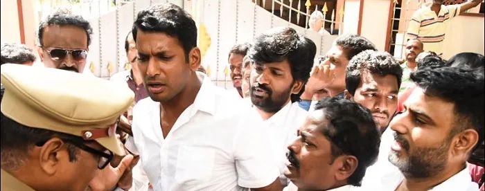Vishal and actor Mansur Ali Khan were attempting to break the lock when he was detained by the police.