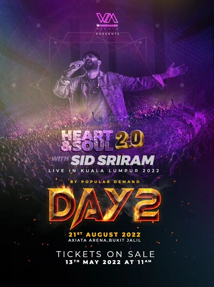 Did you miss out on getting your tickets for Sid Sriram’s highly anticipated Heart & Soul Live in KL show this August? Because of the overwhelming response to ticket sales, as well as the countless pleas from fans, not just to Woodmark Events, but to Sid himself, there will now be a second show of the concert on 21st of August 2022.