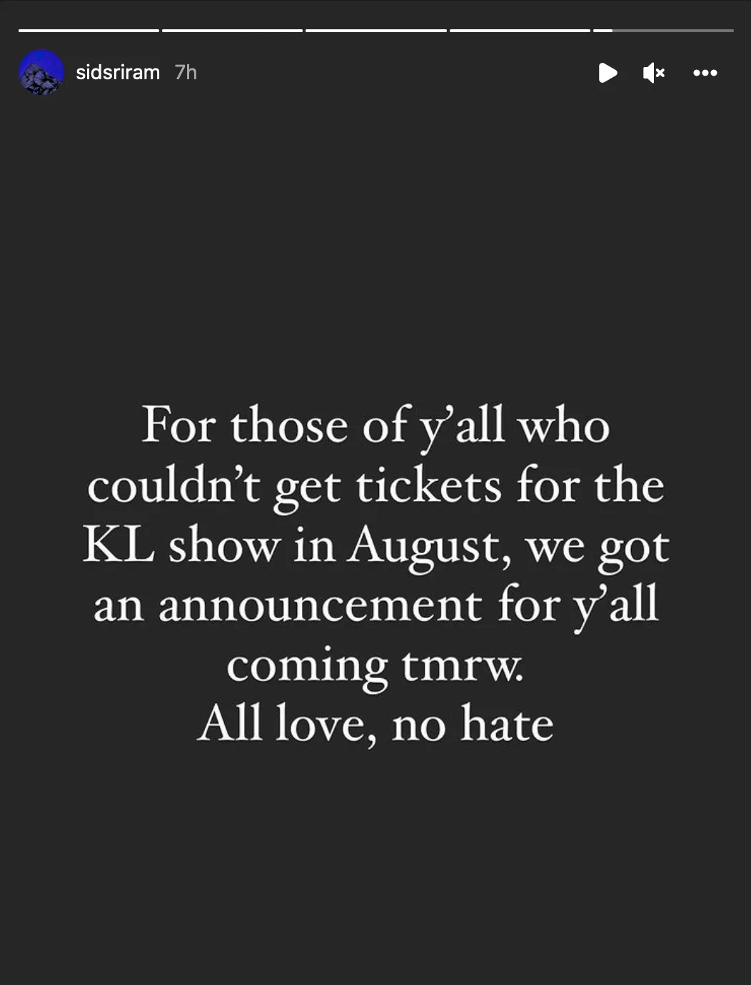 A total number of 8,000 tickets have been SOLD OUT for Day 1, making it a new milestone for the Indian playback singer who hasn’t performed in Kuala Lumpur for the past 2 years. Sid who was overwhelmed with the love and support shown by his Malaysian fans also took to his official instagram page to share the good news!