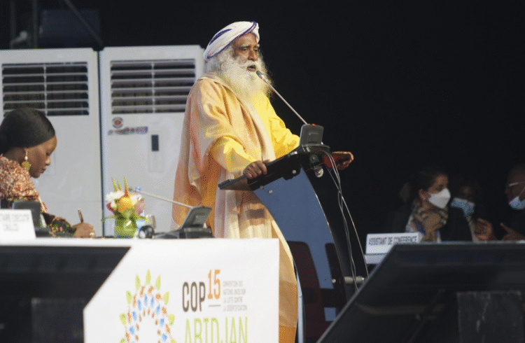 Sadhguru, who is currently on a 100-day, 30,000-km lone motorcycle #JourneyForSoil flew to Abidjan in Ivory Coast to address representatives from 197 nations at the 15th session of the Conference of Parties (COP15) to the United Nations Convention to Combat Desertification (UNCCD). Sadhguru in his address distilled out one overarching objective – which is to ensure that there is a minimum of 3-6% organic content in agricultural soil and provided a three-pronged strategy to achieve this. The solution presented by Sadhguru is quoted below.
